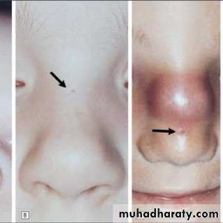 or nasal midline(CT or MRI prior to excision to determine intracranial extension).