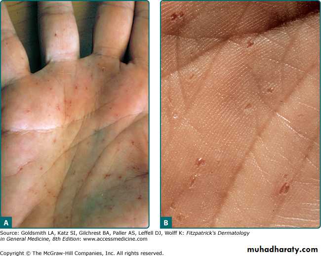 Most common on hands and around mouth.