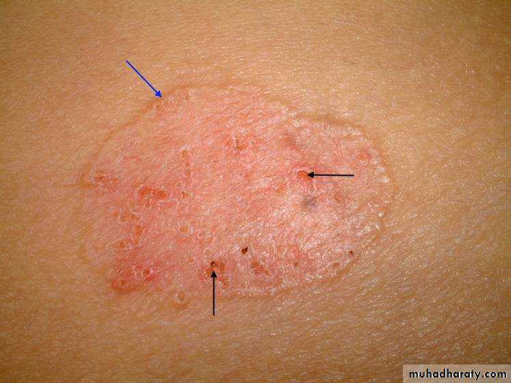 B-Bowen’s disease: Erythematous plaque with sharp borders and slight scaling.#Erythroplasia of Queyrat is SCC in situ of the glans penis.
