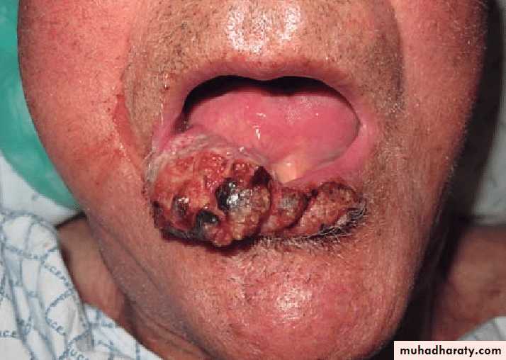 1. Verrucous SCC: Slow-growing, exophytic, and less likely to metastasize.2. Ulcerative SCC: Grows rapidly and is locally invasive with very aggressive growth characteristics.
