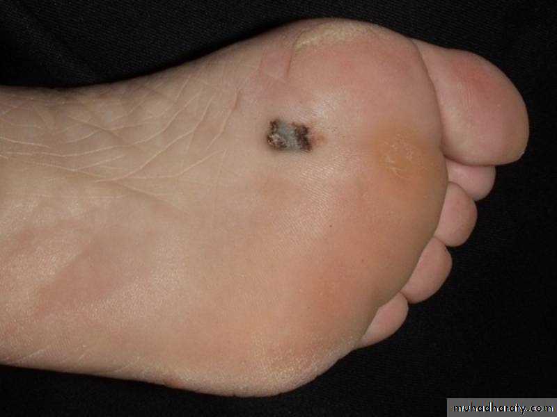 a-2% to 8% of melanomas in Caucasians, 35% to 60% of melanomas in African-Americans, Hispanics, and Asians.b. Presents in palms, soles, and beneath nail plate (subungual).