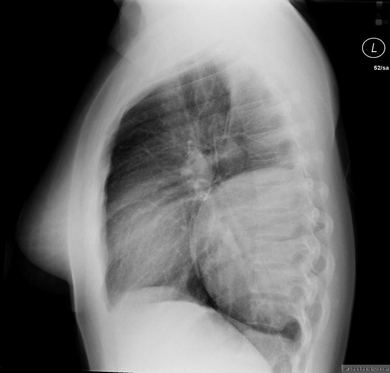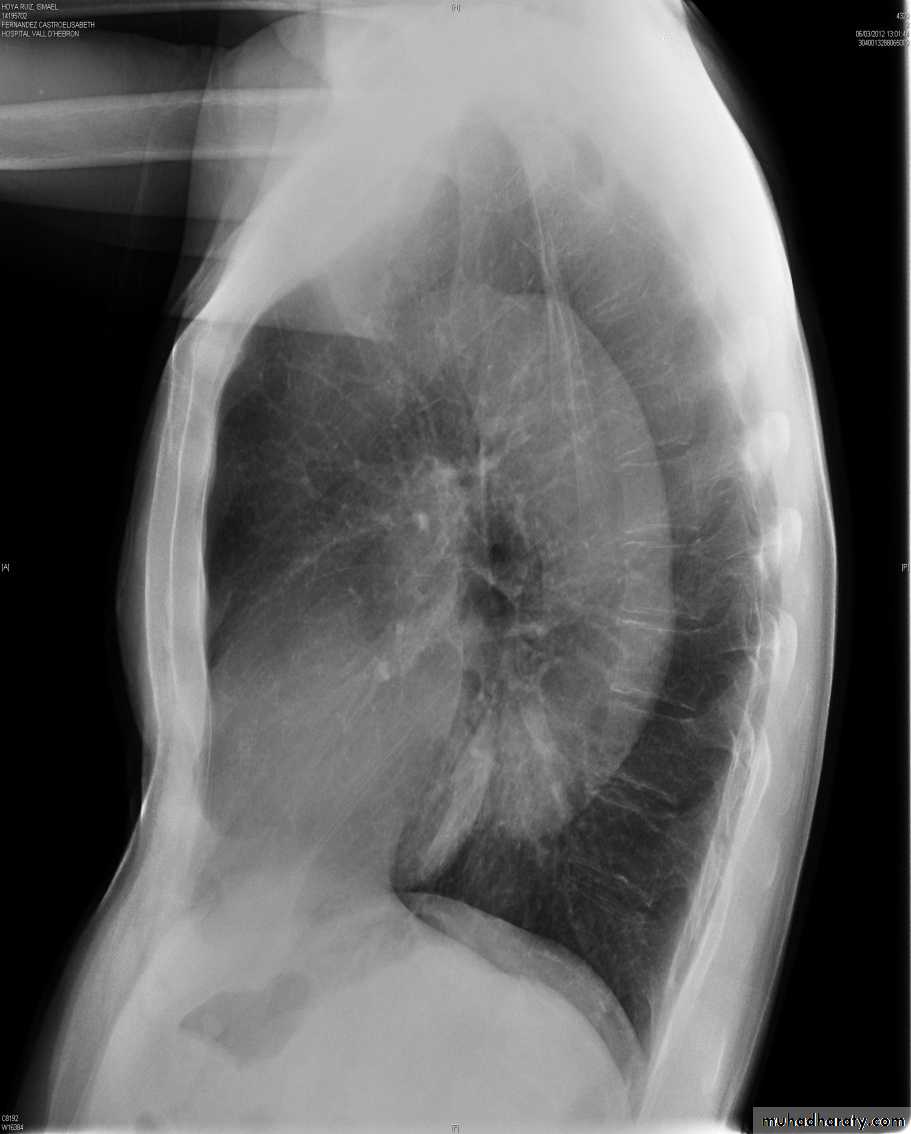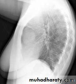 Posterior mediastinal lesions are seen on the lateral view projecting over the spine and are also paraspinous on the frontal chest x-ray. Most (90%) posterior mediastinal lesions are neurogenic.