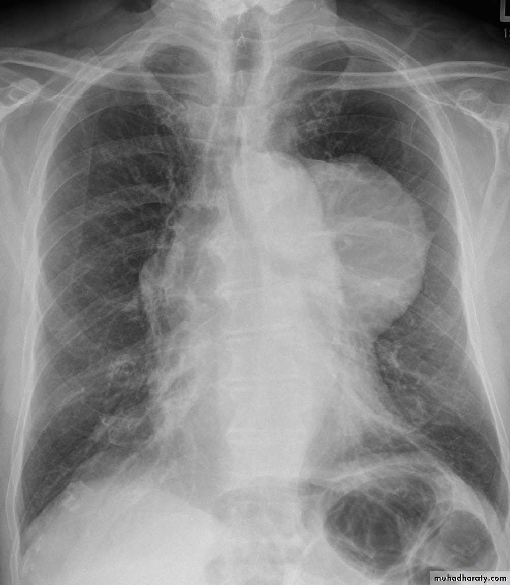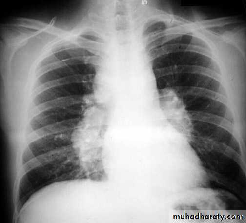 • 1.cardiomegaly (particularly left atrial enlargement although the right and left ventricle can also be enlarged).