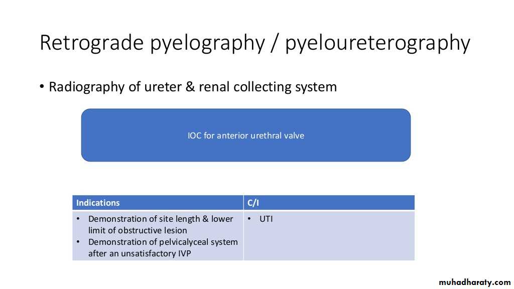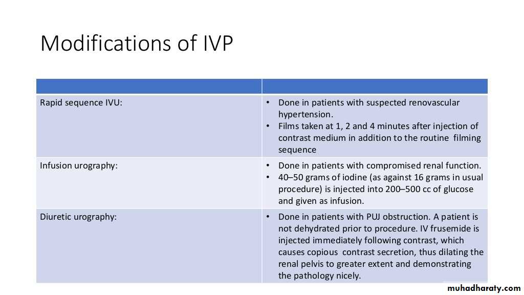 When detailed demonstration of the pelvicalyceal system and ureters is required.