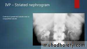 Linear bands of contrast extending from renal medulla to cortex.1. Acute ureteric obstruction.