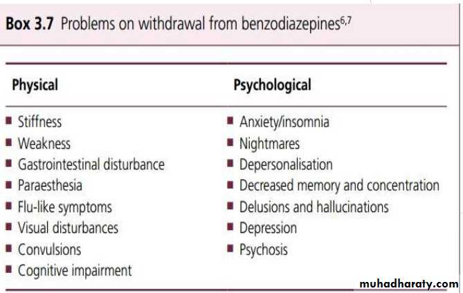 If benzodiazepines have been taken for a long time, it is best to withdraw them gradually over a period of several weeks.Dependence and withdrawal