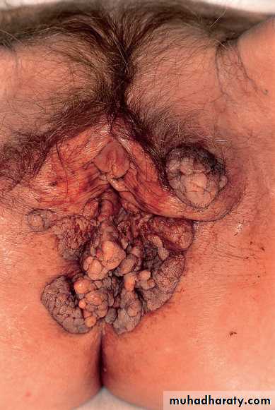 is a rare tumor of the anorectal area and external genitalia associated with the low-risk HPV types 6 or 11The histology of the Buschke–Lِwenstein tumor may appear remarkably benign and resemble that of condylomata acuminata