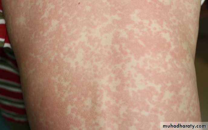 Reactive erythema: Urticaria, erythema multiforme