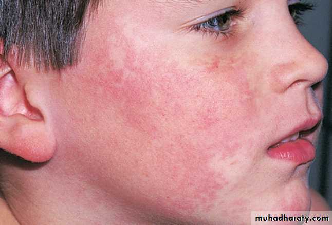 Arthritis & congenital rubella infection syndrome if occur in 1st trimester of pregnancyERYTHEMA INFECTIOSUMFifth disease ■ “Slapped cheek” disease ■ Parvovirus B19 infec