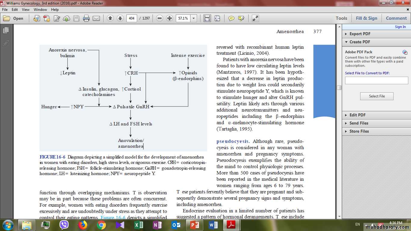 Any process that destroys the hypothalamus can impair GnRH secretion and lead to hypogonadotropic hypogonadism and amenorrheaThe tumors most often associated with amenorrhea include craniopharyngiomas, germinomas ,gliomas, and metastatic lesions.