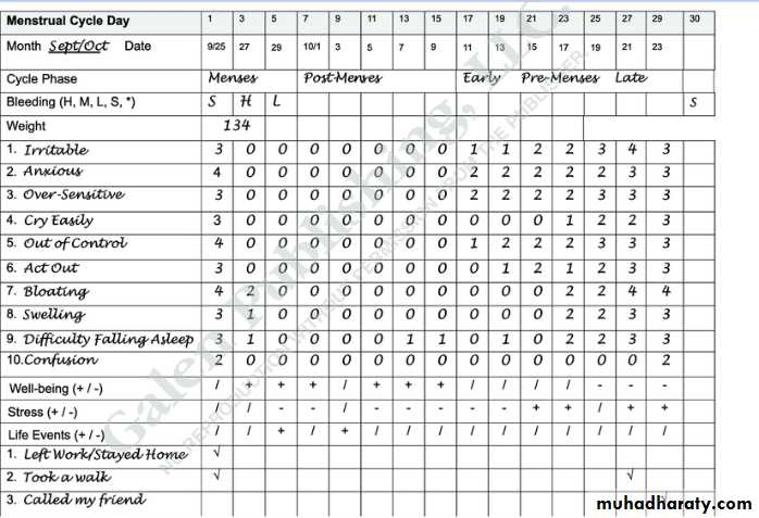 A variety of symptom charts are available from the National Association of Premenstrual Syndrome.