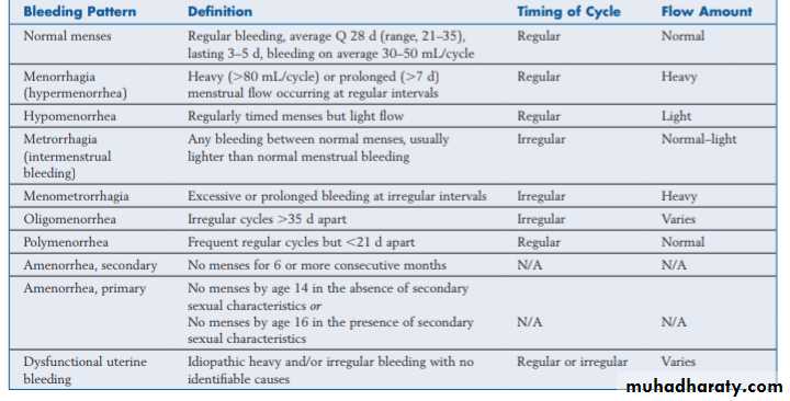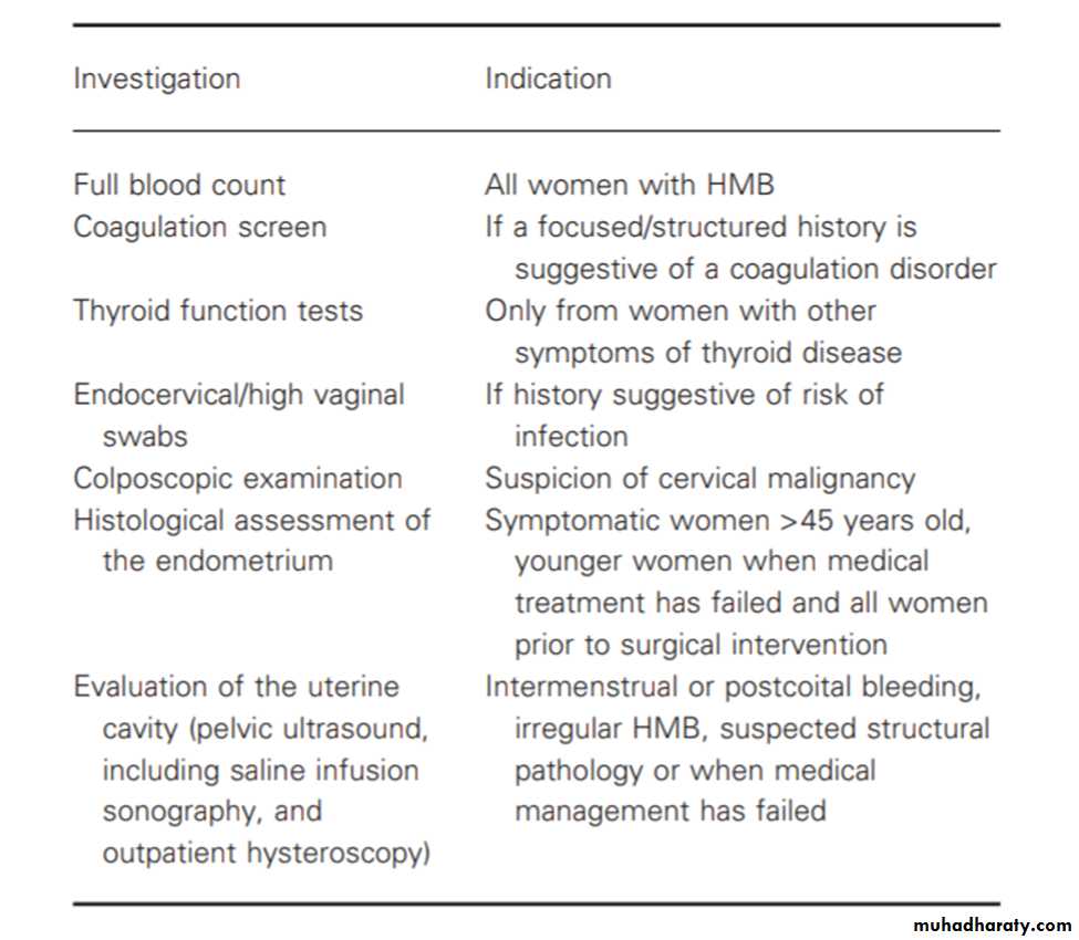 HMB: heavy cyclical menstrual bleeding over several consecutive cycles (Objectively is a total menstrual blood loss >80ml )