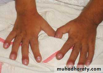 − Prolonged intermittent fever, weight loss, fatigue, myalgia, arthralgia, headache,nausea, vomiting, early finger clubbing.