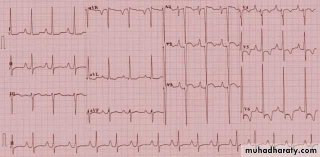 - ECG-atrial enlargement, left ventricular or right ventricular enlargement; nonspecific T-wave changes