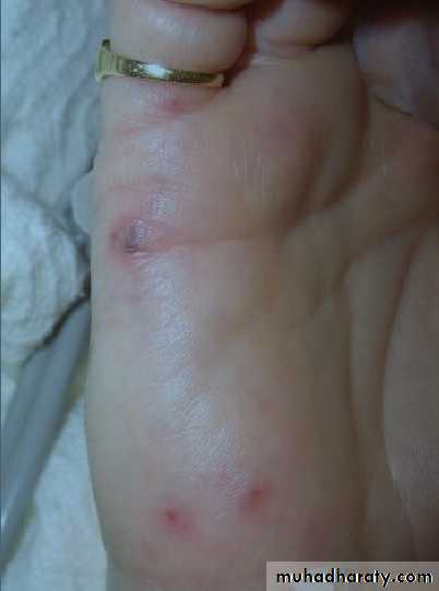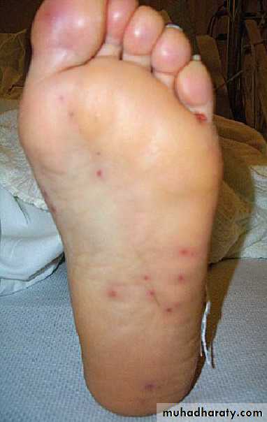 ° Janeway lesions—painless, small erythematous or hemorrhagic lesions on