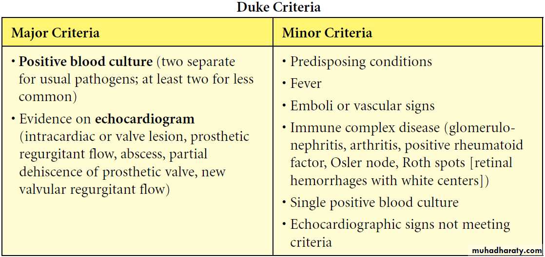 Diagnosis• 2 major criteria, or• 1 major criterion and 3 minor criteria, or• 5 minor criteria