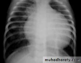 ° Heart size : on a good inspiratory film, the ct ratio should be less than 55% in infants under 1 year of age and less than 50% in older children and adolescents