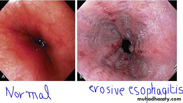 • Endoscopy allows Dx of erosive esophagitis & complications such as strictures or Barrett esophagus;