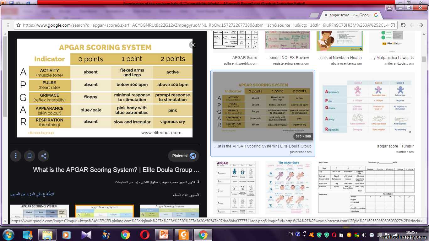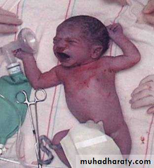 Also observe the respiratory rate which is normally between 30-40/min in full term baby and in resting state, a rate of >60 is abnormal. The resp rate in preterm baby is higher, the premature infant may have a periodic breathing.