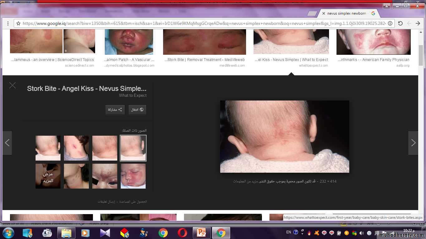 are small pale pink ill defined flat vascular lesions that occurmostly on the glabella, eye lid upper lip & nuchal area in