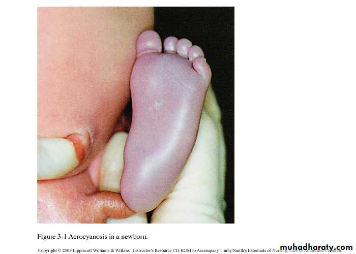 If he is cyanosed, is it involving the hands and feet known as (acrocyanosis) especially when they are cold which is a normal phenomena due to vasomotor instability, or the cyanosis is central one due to cardiac, pulmonary or CNS disease.