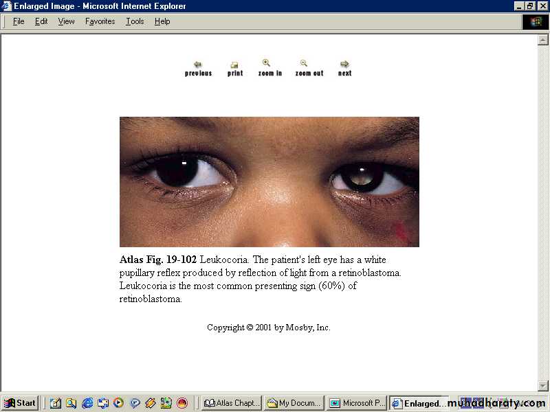 other intraoccular pathology.But white pupillary reflex (leukocorea) is seen in:-
