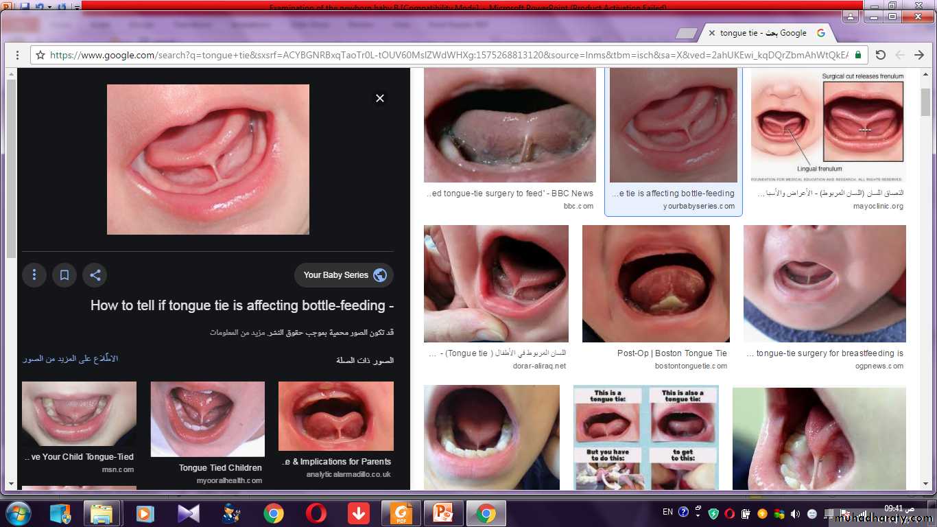Ankyloglossia (tongue tie) present when the frenulum of the