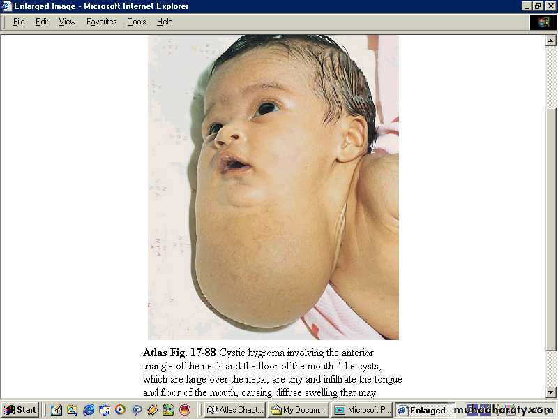 Neck:It is relatively short in the newborn, there may be goiter, cystic hygroma, sternomastoid tumor, webbing of the neck in female suggest Turner syndrome, both clavicles should be palpated for fractures.
