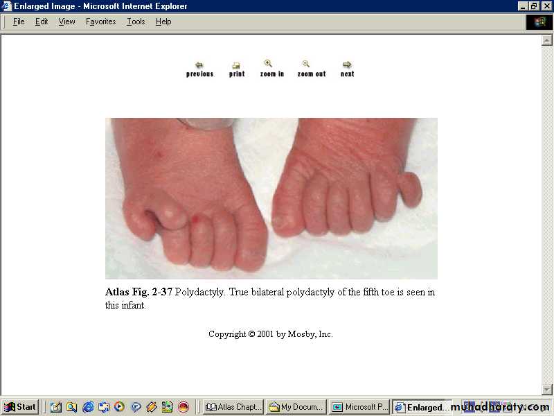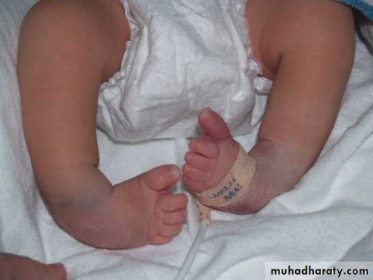 hands &feet for polydactyly or syndactyly, nerve injury or fracture seen by observing spontaneous or stimulated movements of the extremities.Clubfeet