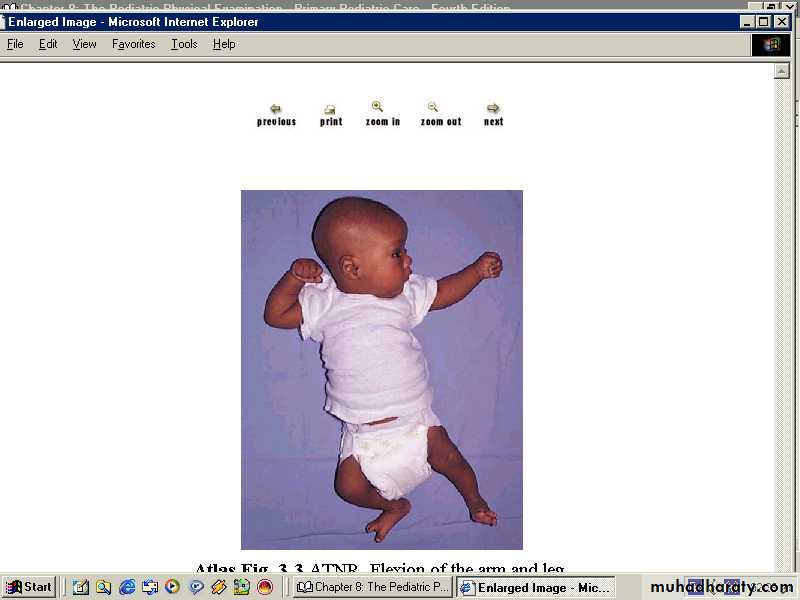 when manually turning the head to one side while supine,extension of the arm occurs on that side of the body