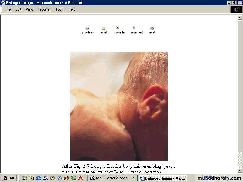 Fine soft immature hair lanugo hair frequently covers the scalp and may cover the face & shoulders in premature infants.