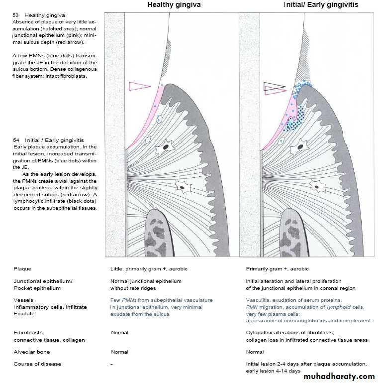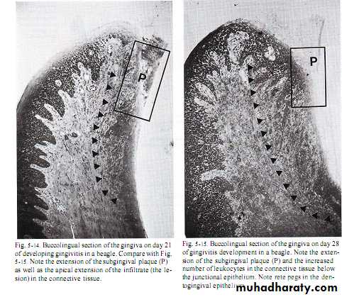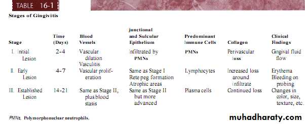 Early gingival lesion-Occur during forth to seventh days of undisturbed plaque accumulation.