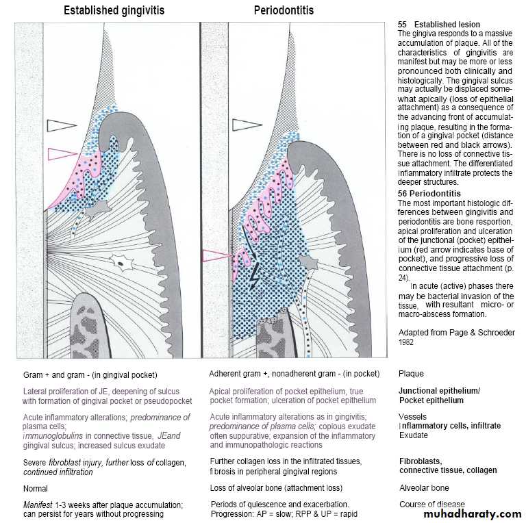 Advanced gingival periodontal lesionGrow of plaque along crown & cementum.