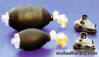 2- Positive pressure ventilation with a 100% oxygen is given through a