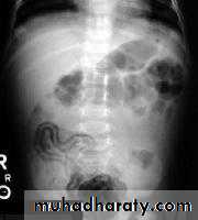 Diagnosis:-Complete blood count.-Blood culture.-Plain abdominal x-ray: initially shows separation of bowel loops due to ascitis& fluid levels. Periluminal tramlines indicating intramural gas [pneumatosis intestinalis]. Later signs include gas in the portal tree& gas under the diaphragm following perforation.The differential diagnosis of NEC includes sepsis withintestinal ileus or a volvulus. Both conditions can present with systemic signs of sepsis and abdominal distention.