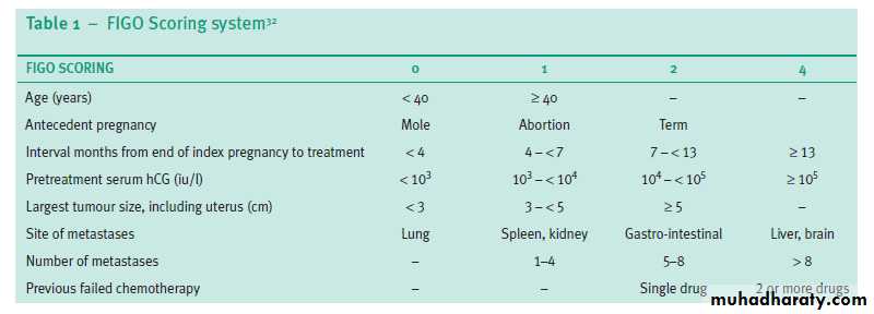 Chemotherapy for GTN is based on FIGO Score..