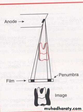 • Produced from a point source, to reduce blurring of the edges of the image, a phenomenon known as the penumbra effect