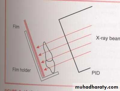 X-ray Beam Angulations: To minimize dimensional distortion the x-ray beam must be direct perpendicular to the tooth and the film in order to recorded the adjacent structures in their true spatial relationships.