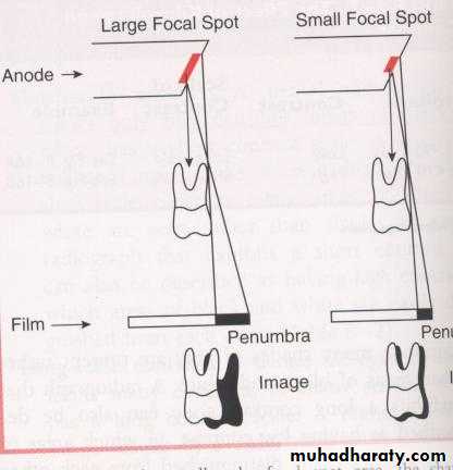 Focal Spot Size: The smaller the focal spot area the sharper the image appears, the larger the focal spot area the greater the loss of image sharpness.