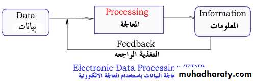 هي مجموعة من الحقائق الأولية التي يراد معالجتها بواسطة الكمبيوتر للوصول إلى النتائج المطلوبة التي تسمى المعلومات information بحيث يستفيد منها مستخدم الحاسوب .