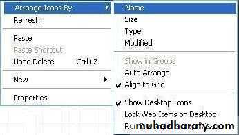 انقر ترتيب حسب الاسم ليتم الترتيب الأيقونات حسب الترتيب الأبجدي انقر على الاسم Name حتى تشاهد النتيجة.