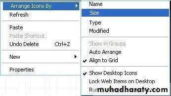 انقر على الحجم Size لترتيب وفق حجم الملف إذا كانت الأيقونة عبارة عن أيقونة مختصرة لبرنامج ما فانه يرتب حسب حجم الملف صاحب الأيقونة المختصرةبواسطة النوع type