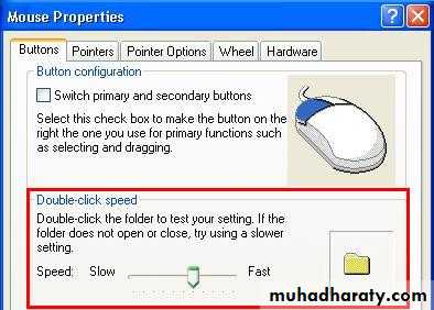 تظهر لنا مجموعة ايقونات منها ايقونة الفأرة mouse ضع المؤشر فوق ايقونة الفأرة .
