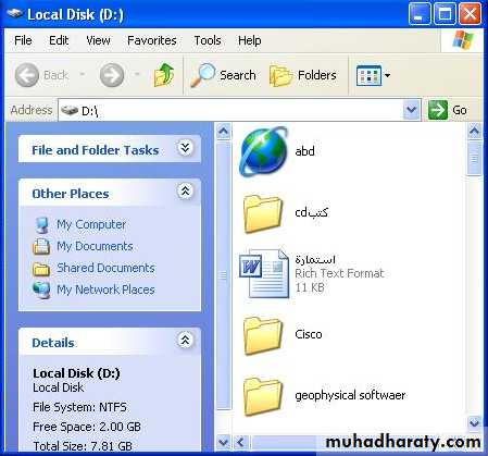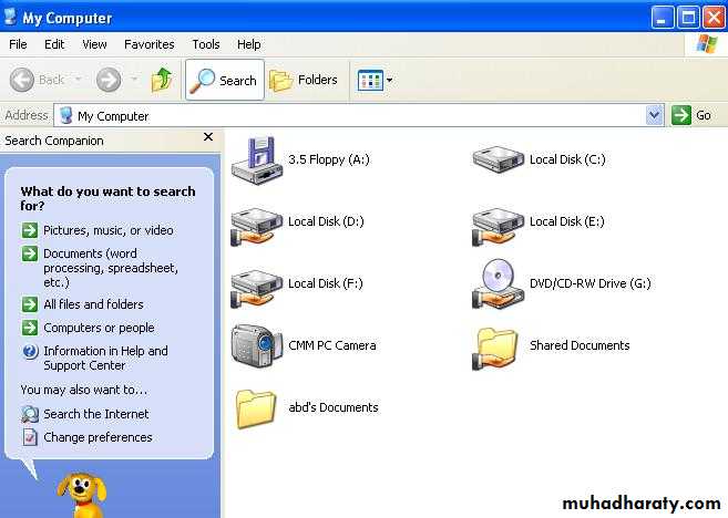 افتح أيقونة My Computer بالنقر المزدوج حيث تظهر نافذة تحتوي على الأقراص ( C : D: E: F: ) .