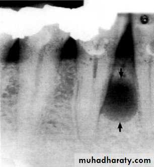 4-Soft Tissue Capsule. A radiopaque lesion may have a soft tissue capsule, which is indicated by the presence of a radiolucent line at the periphery. This soft tissue capsule may be seen in conjunction with a corticated periphery, as is observed with odontomas and cementoblastomas