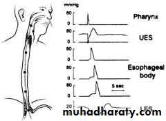 Manometer:- confirms high pressure , non-relaxing lower esophageal sphincter ,with poor contractility of the oesophageal body. The intraoesophageal pressure is higher than the gastric pressure due to a fluid and food filled oesophagus.