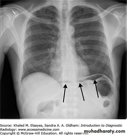 Spontaneous esophageal perforation (Boerhaave’s syndrome). Result from forced vomiting.Clinical picture:-