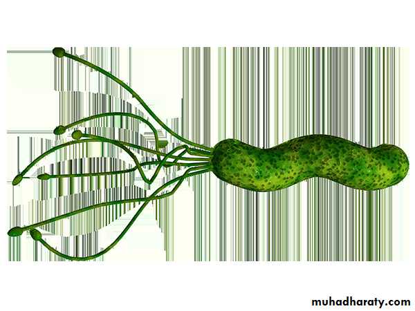 H pylori this is a gram negative micro aerophilic, spiral and has multiple flagella at one end which make it motile, allowing it to burrow and live deep beneath the mucus layer closely adherent to surface epithelium .it infect the stomach mainly but may be found in duodenal mucosa where there is gastric metaplasia.