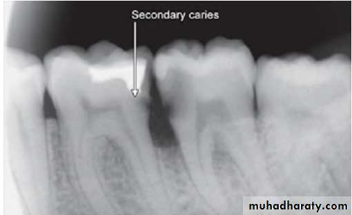 – May show depth and extent of caries.– Periapical area shows normal appearance but a slight widening may be evident in advanced stages of pulpitis.