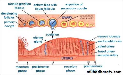 cyclic changes take place every lunar ( 28 days) under influence of FSH & LH hormones from anterior pitutary gland include 3 steps:Formation of graffian follicle